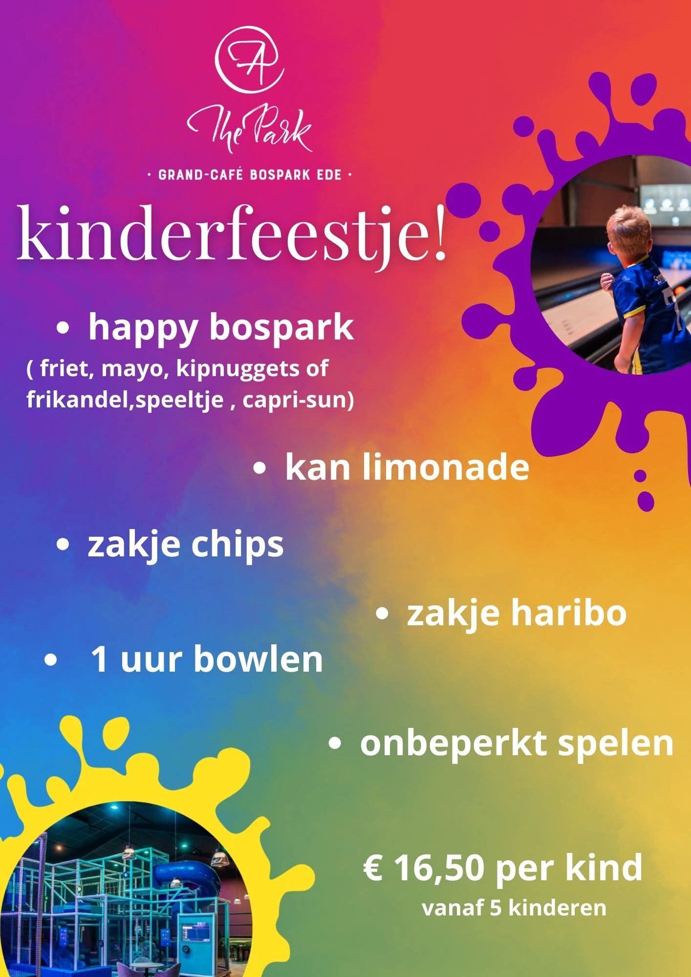 Inclusief bowlen en spelen in de indoor speeltuin! Reserveer via grandcafebpe@thepark.nu of